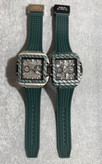 / مشکی کامل / بند سبزقاب استیل سبز / بند سبز قاب سبز / بندسورمه ای وسط تصویر / مشکی صفحه روشن / مشکی قاب رزگلد