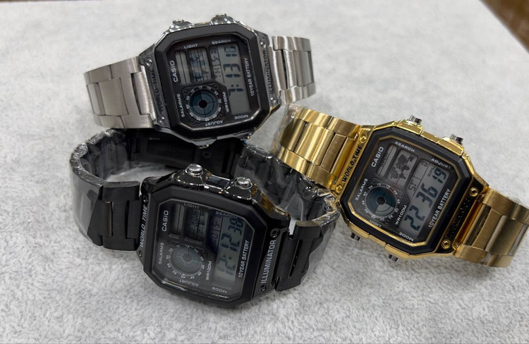 آلارم،چراغ دید در شب،کرونومتر،زمان ۲۴ ساعته،تقویم هفته وماه، دایره سمت چپ رقص نور